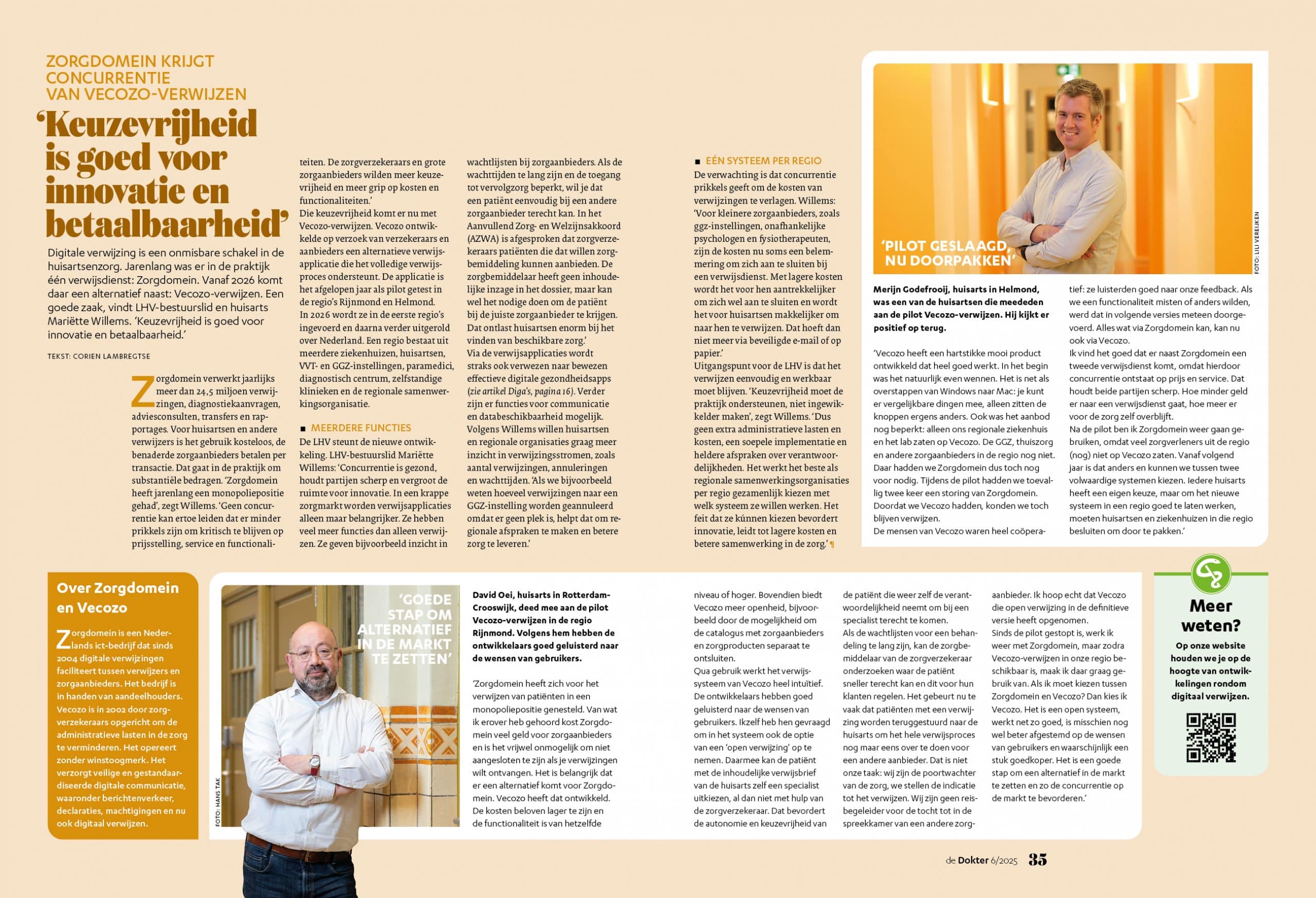 Digitale verwijzing is een onmisbare schakel in de huisartsenzorg. Jarenlang was er in de praktijk één verwijsdienst: Zorgdomein. Vanaf 2026 komt daar een alternatief naast: Vecozo-verwijzen. Een goede zaak, vindt LHV-bestuurslid en huisarts Mariëtte Willems. ‘Keuzevrijheid is goed voor innovatie en betaalbaarheid.’