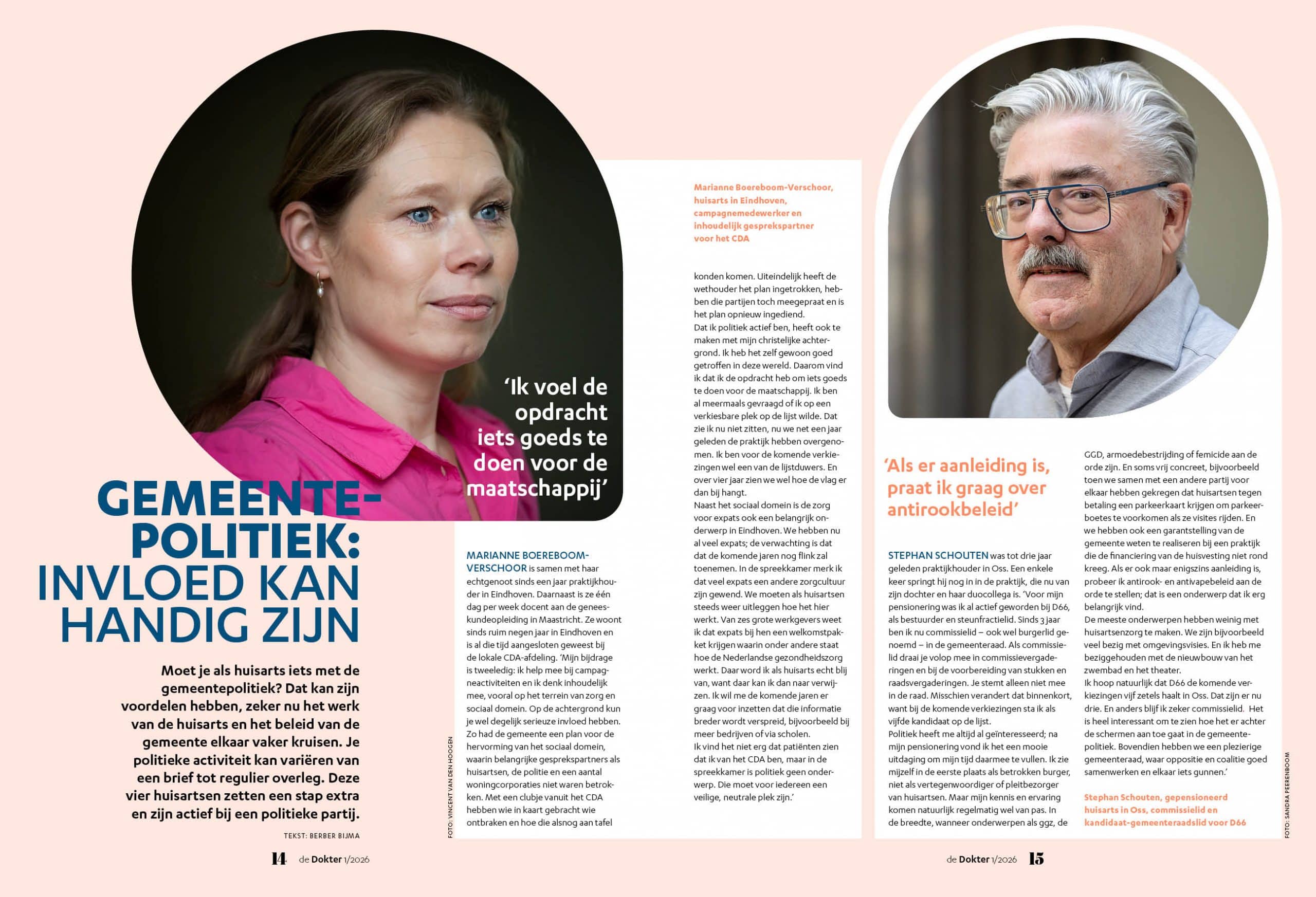 Moet je als huisarts iets met de gemeentepolitiek? Dat kan zijn voordelen hebben, zeker nu het werk van de huisarts en het beleid van de gemeente elkaar vaker kruisen. Je politieke activiteit kan variëren van een brief tot regulier overleg. Deze vier huisartsen zetten een stap extra en zijn actief bij een politieke partij.