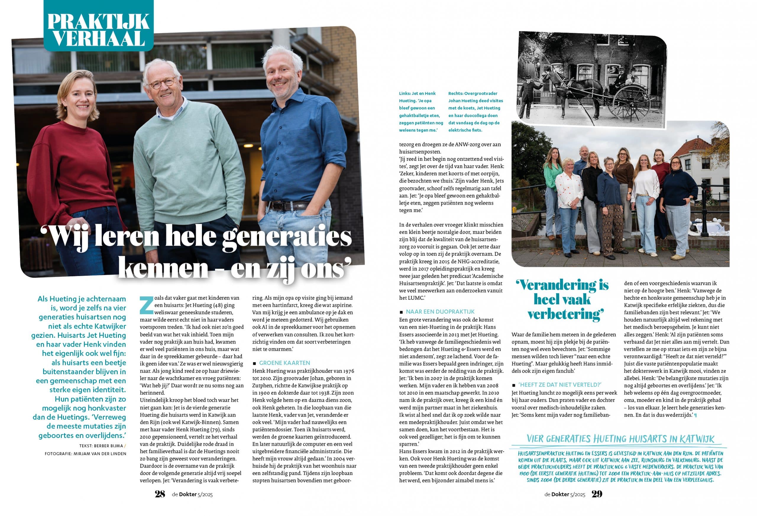 Als Hueting je achternaam is, word je zelf na vier generaties huisartsen nog niet als echte Katwijker gezien. Huisarts Jet Hueting en haar vader Henk vinden het eigenlijk ook wel fijn: als huisarts een beetje buitenstaander blijven in een gemeenschap met een sterke eigen identiteit.